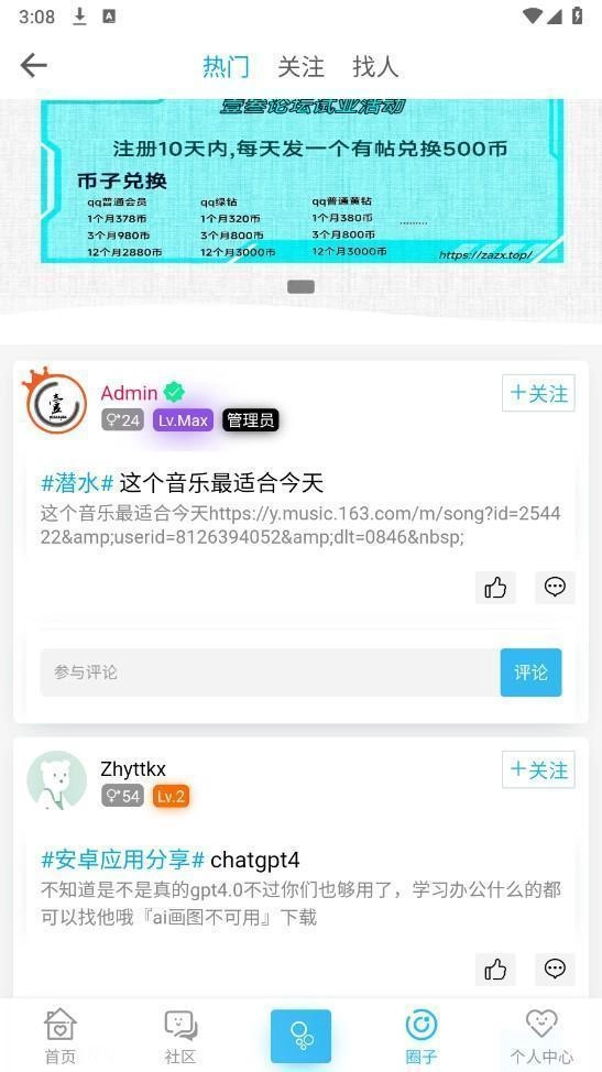 4、进入圈子,可以在这里发布帖子,互相分享好用的资源。