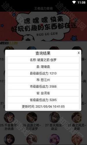 2、该软件不仅能查询英雄战斗力,还能查询最低地区,同时提供省份以及时间信息的全面展示。