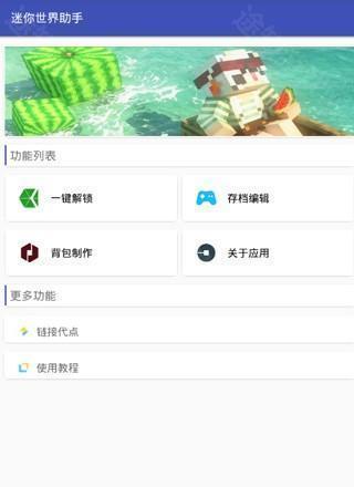 1若玩家们打算使用迷你世界助手,需先点击进入迷你世界助手主页,在其中选择“一键解锁”功能,以此来解锁游戏内的装扮。