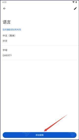3、轻点位于最下方的添加键盘按钮