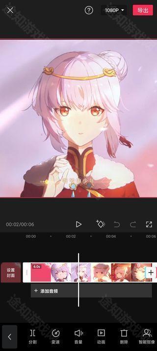 6、进入剪映视频剪辑界面,对视频进行剪辑,剪辑完成后点击“导出”图标