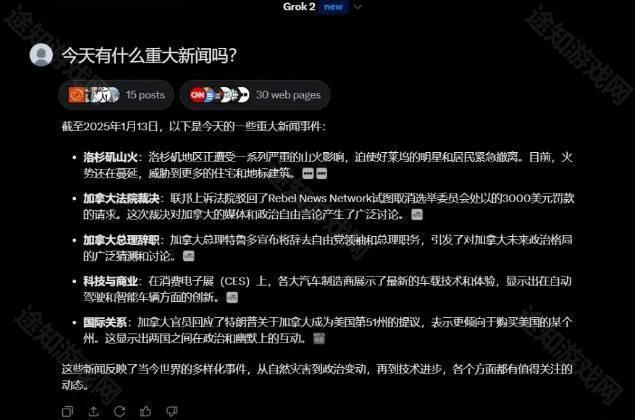 Grok AI能够实时获取X(原Twitter)平台的数据,这就表明你能够针对任何当下的热点话题或者新闻进行提问。这对于跟踪全球各类事件、把握市场动态,亦或是知晓社交媒体上的热门话题而言,都极具实用价值。举例来说,你可以问:“今天有什么重大新闻吗?”Grok会为你呈现最新且最热门的资讯。