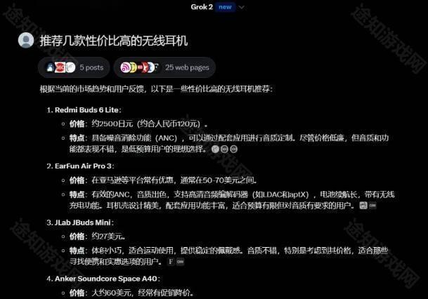 要是你正在找寻某类产品或者服务,Grok AI 能够依据你的需求在X平台展开搜索,为你呈现多种选择以及相关评价。你可以提出诸如“推荐几款性价比高的无线耳机”之类的问题,Grok 会参照用户反馈与当下趋势给出建议。
