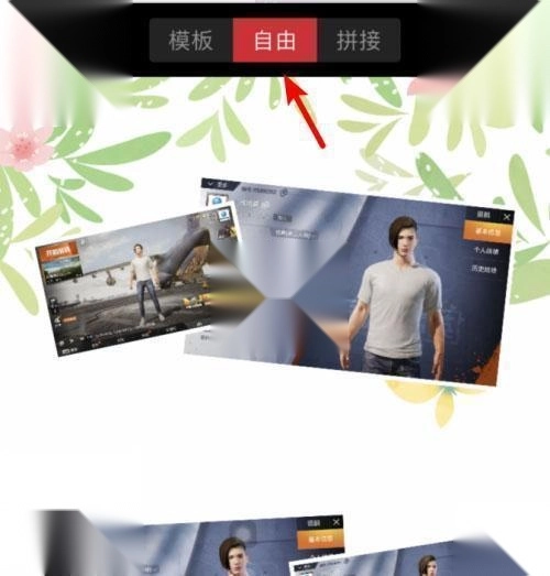 6、同时在拼图页面,点击上方的自由选项,也可以进入自由拼图界面,对照片进行自由拼接。