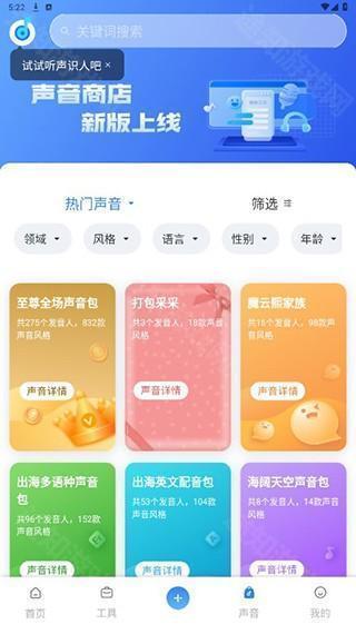 500多款优质声音,涵盖各色类型,1000余种不同风格,无论哪个领域,都能尽享品质配音!