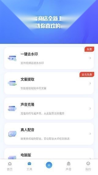 用户只需点击下方工具,就能使用丰富多样的配音工具。