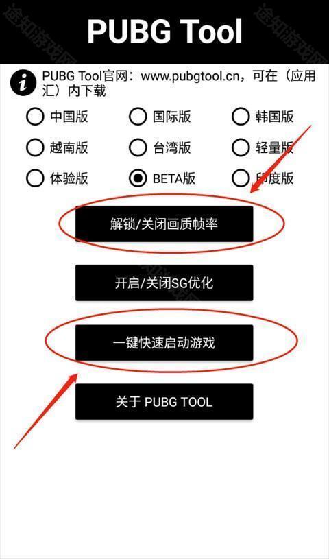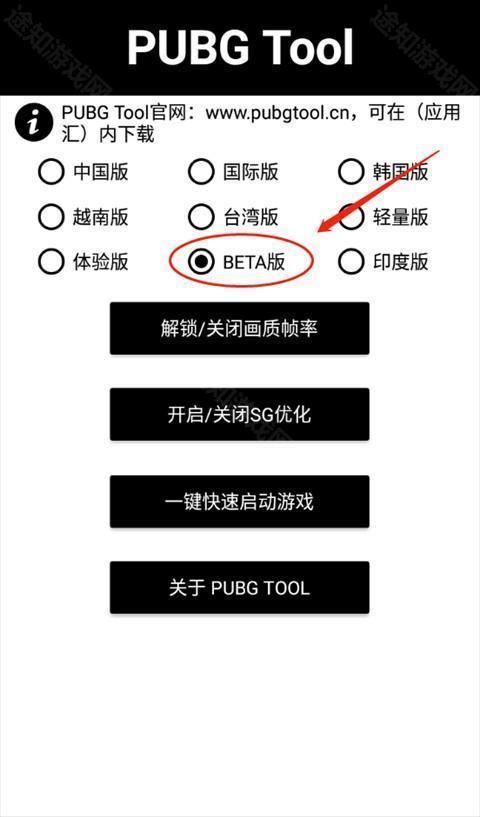 2、打开PUBGTool主界面,选择对应的PUBG版本(PUBG国际服体验服对应的是BETA版)。