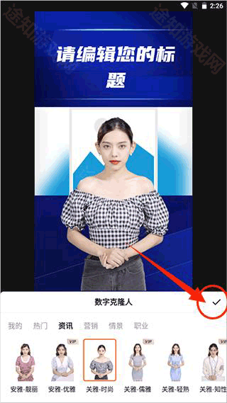 3、在视频编辑页面,依据自身需求挑选数字克隆人形象。