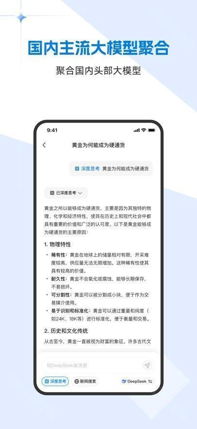 2. DeepSeek智能助手能够迅速为您答疑解惑,同时还支持联网搜索以及深度思考功能。