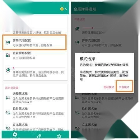 3、除此之外,你能够对弹幕气泡进行个性化设定,通过选择“气泡模式”来完成配置。