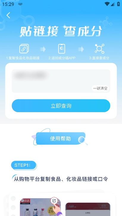 只需复制像天猫、京东这类电商平台的商品链接,然后粘贴到应用里,成分喵就能自动抓取并解析该商品的成分表,让你轻松完成远程成分查询。