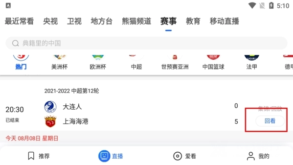 3、回看按钮的位置会因频道而异。例如在赛事频道,能直接看到赛道列表,还可使用回看功能。
