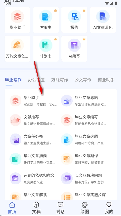 1. 开启软件,进入首页界面后,点击“毕业助手”。