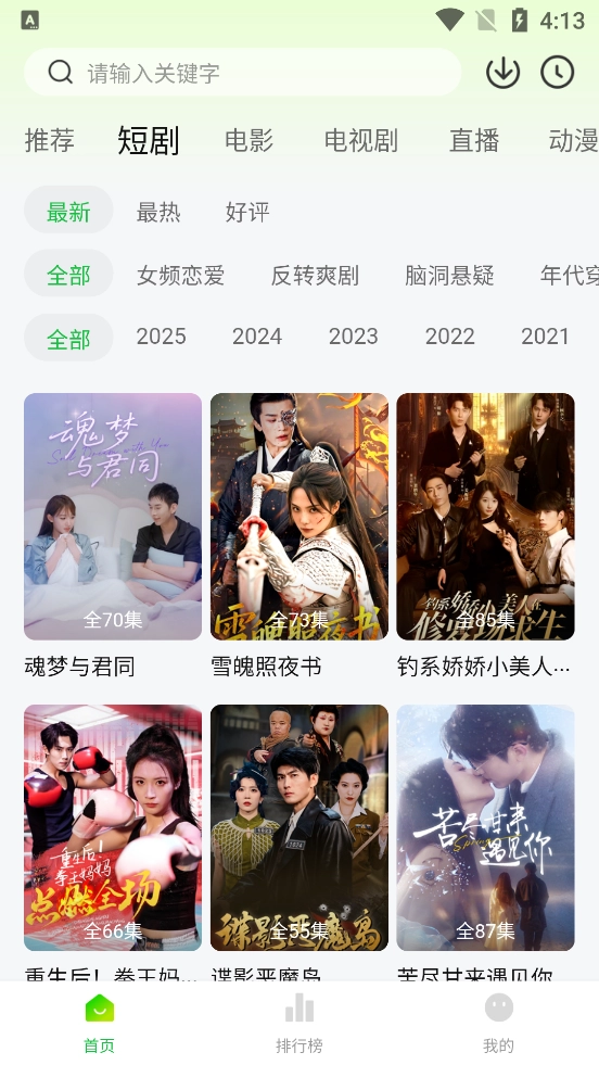麦田影院涵盖海量影视资源,是追剧的得力助手,其画质高清,网罗全网最新热门影视。该平台影视类别丰富多样,连短剧也一应俱全。排行榜会推送最精彩优质的影片。历史播放功能方便你再次登录时能接着观看。除电影外,电视剧、直播、动漫、综艺、少儿等栏目也任你挑选。