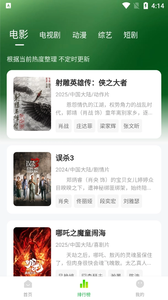 1. 权威影视排行榜:呈现备受欢迎的首播热门电视剧以及精彩的院线大片排行,助您轻松发现热门影视作品。
