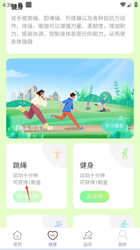 2、在健康板块参与每日运动挑战,这里不仅能让你积极运动,还会介绍各类丰富的运动小知识,实现运动实践与知识学习同步进行。