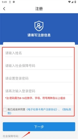 4、填入你的姓名等基础信息,设定好登录密码,点击“下一步”,注册即可轻松完成,简单又快捷!