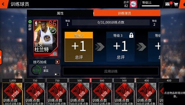 训练球员需要相应的经验值,升级经验值的获得需要消耗训练点数。