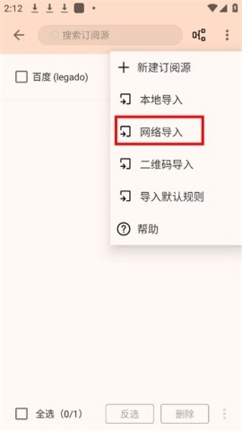 3、选取【网络导入】功能,预先准备好以便直接引入那些书源链接。