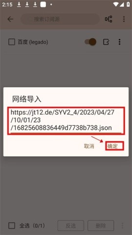 4、复制本站本页面的特别说明中的任意书源链接,粘贴到弹出的网络导入框中,点击【确定】以完成导入。