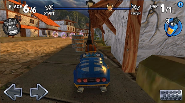6、通过左右键掌控方向,右下角设有刹车键,尽情利用地图赛道,把对手远远甩开吧。