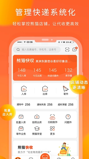 熊猫快收安装是一款十分好用的快递管理软件,用户可以通过手机来管理快递包裹,批量管理快递出入库,轻松掌控熊猫店铺,让门店管理更加轻松,让代收更高效,有需要的用户可以来
