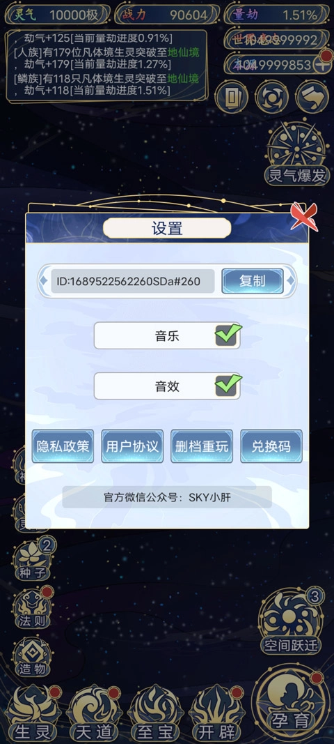 这是一款别具一格的上帝视角模拟养成游戏,它巧妙融合了法则、造物、生灵、天道、至宝、开辟、孕育以及空间跃迁等诸多元素。