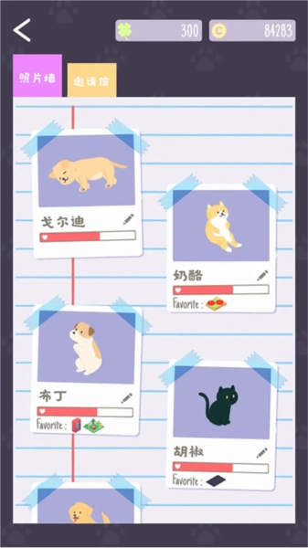 游戏画面风格萌趣十足,色彩缤纷且鲜活。猫猫狗狗的形象塑造极为生动,每一只都具备独特的性格与表情。