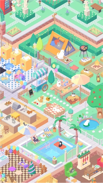玩家获取冰淇淋收益后,能用于购置装饰,对公园进行拓展与建造,还可自由编辑、摆放家具。同时,能激活装饰与猫猫狗狗的互动,观察它们可爱的举动,充满治愈感。
