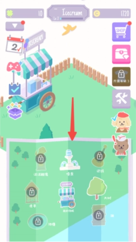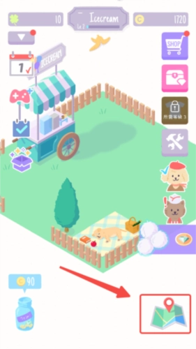 1、在游戏地图中,玩家能够寻觅那些想吃冰淇淋的猫咪与狗狗,点击相应图标,即可开启制作流程。