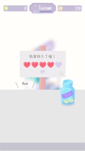 4、玩法大致是向猫猫狗狗售卖冰淇淋,之后就能用赚到的钱购买装饰品。
