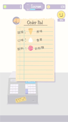 5、冰淇淋的售卖制作过程,和老爹系列游戏有点相似。我们需要等待小猫小狗来点单,接着依照它们下单的纸条,手动制作冰淇淋。