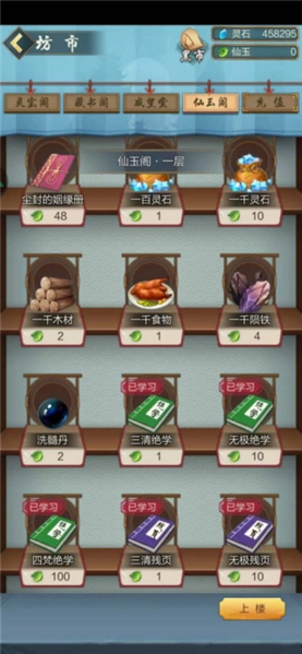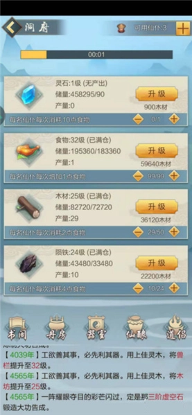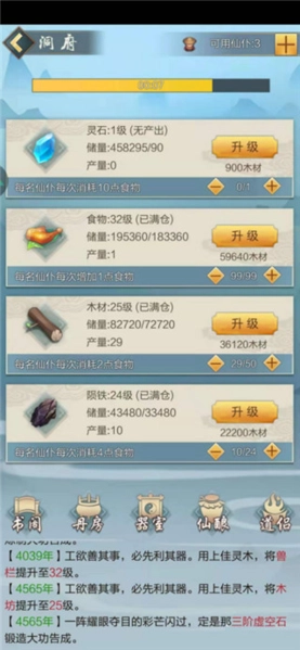 小编当下拥有10产灵,每天只要全力生产,就能收获8万灵石。其中,炼药炼丹能得两万,花费4000威望可换4万,剩余的灵石则用来购置锦盒与悟道书。之后刷图获得的灵石,就放在背包里攒着,等攒到接近灵石坊的存储上限时,便用这些灵石购买坊内物品。当灵石攒到7万至8万,且藏书楼3层出现10万盾法术时,就把背包里的灵石加上灵石坊的灵石,全部用来购买10万盾的法术书。要是灵石还不够,就卖点药和矿。如此操作,炼丹、炼器、悟道的级别都不会太过落后,锦盒还能送给道侣获取修为。