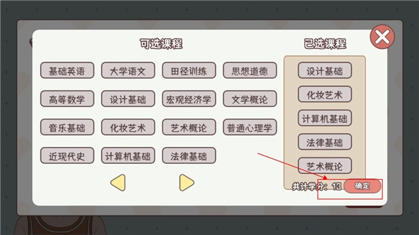 3、每门课程均会增加一个属性,并降低一个属性。在选课过程中,长按相应课程即可查看。(当然,你也能在后续上课的时候查看,届时会直接展示出来,但那时已无法重新选课。)