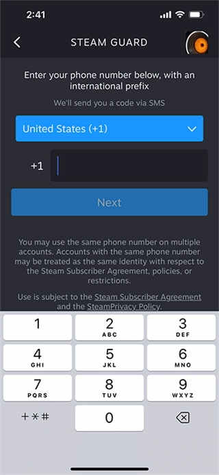 接下来,您需要输入一个电话号码。 我们将向该号码发送一条确认短信。 如果您以后遇到不能访问您的 Steam 帐户的情况,您可以要求 Steam 向该号码发送短信,便可迅速恢复对您的帐户的访问。