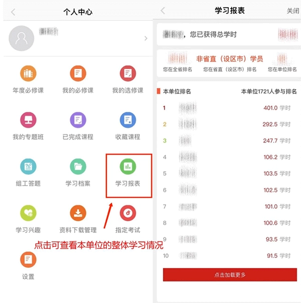 您能够在手机“个人中心”页面里的“学习报表”处进行查看。