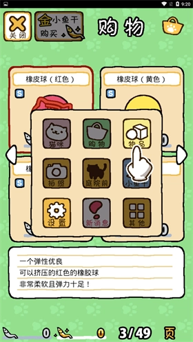 5、进入购物界面后,寻找红色的皮球,它可以用普通小鱼干购买。