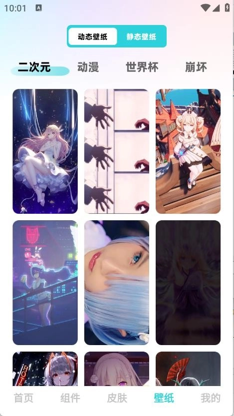 4、进入“壁纸”页面,这里面有着大量壁纸资源,类型丰富多样,包含二次元、世界杯、动漫等。