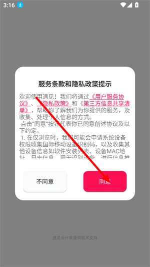 2、打开进入软件,点击同意相关的隐私政策