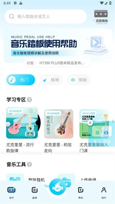 火听尤克里里是一款围绕尤克里里谱与教学开发的音乐软件,能和火听智能蓝牙无线翻谱器搭配使用。
