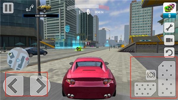 正式进入游戏后,左侧可通过点击方向键来操控方向,右侧则由玩家负责控制油门与刹车。