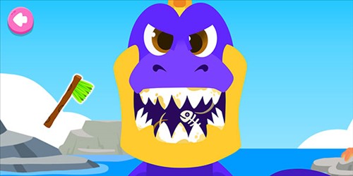 在刷牙游戏里,玩家通过拖动牙刷的方式,把恐龙嘴巴里的所有污渍都清理干净就能顺利通关。