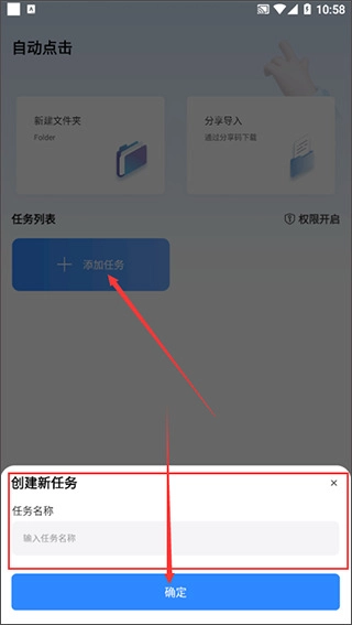 在本站完成安装后点击打开进入,授予软件运行所需的必要权限,接着在首页“任务列表”板块下点击“添加任务”,输入任务名称并点击确定,就能进入下一步操作。