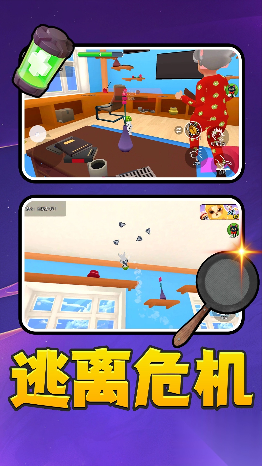 多在房间的各个角落探索一番吧,那些藏起来的道具不仅能帮你解锁新技能,还能增加血量,这样捣蛋的时候就更有底气啦。