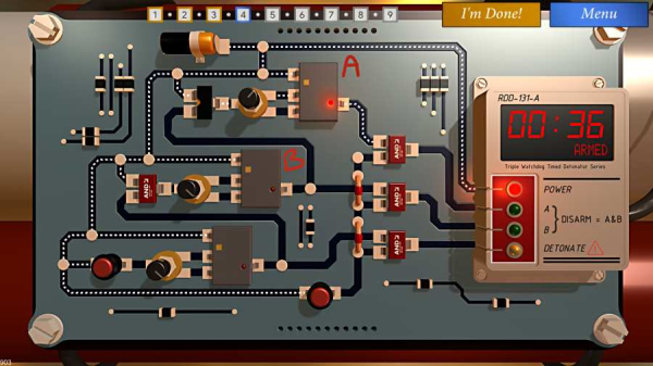 这是一款拆弹模拟类的策略休闲游戏,它着重考验玩家在物理电路领域的知识储备。玩家只有熟练掌握相关知识,才能顺利上手并玩好这款游戏。
