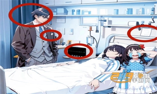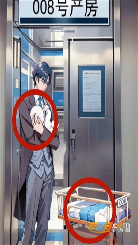 首先依照下图来摆放角色,接着点击心电图、欠费通知单、男人的表情以及口袋里的亲子鉴定。