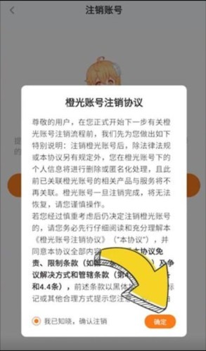 点击【注销账号】按钮,接着点击【我已知晓,继续注销】选项;