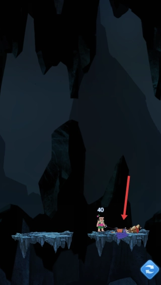 操作推进:在洞穴场景中,操控带有数字标识的角色,向下跳跃以跨越悬崖。