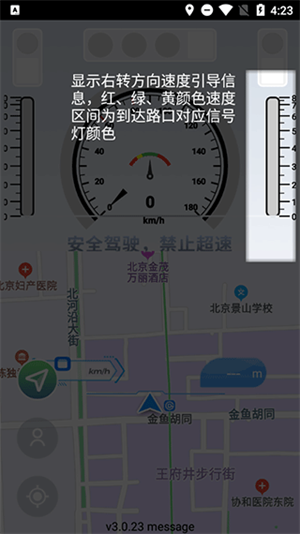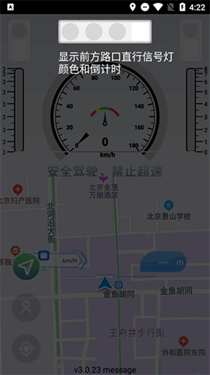 这里显示的是左转方向的速度引导信息,红、绿、黄三种颜色的速度区间,分别对应车辆到达路口时信号灯的颜色。