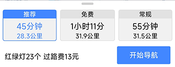 当出现多条可选路线时,你可以依据自身需求进行选择,选定后点击“开始导航”按钮即可。